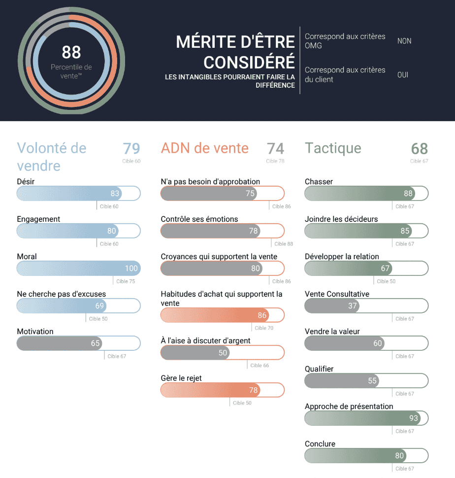 We have seen too many salespeople who we have explained certain techniques to but who are unable to implement them. This is because they have too many issues with their beliefs or a lack of willpower. For example, a refusal to change (‘I've been doing it this way for years’) or difficulty articulating things in front of their prospects (‘I can't say this to my prospects’). Without knowing the sales DNA of individuals, and without measuring the willingness to sell of future salespeople and existing salespeople, it is not possible to put in place the necessary personalised action plans to get the most out of a sales or account management team.